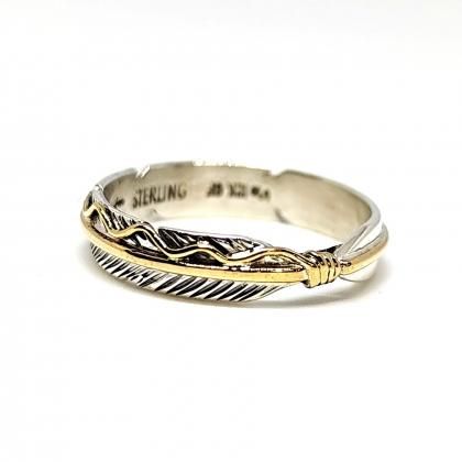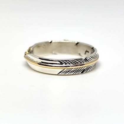 ナバホ族のアーティストであるJohn Nelsonが制作したフェザーのラップリングです。 細部まで細やかな美しい仕上がりになっています。 羽軸には12K GOLD FILLが施されています。
